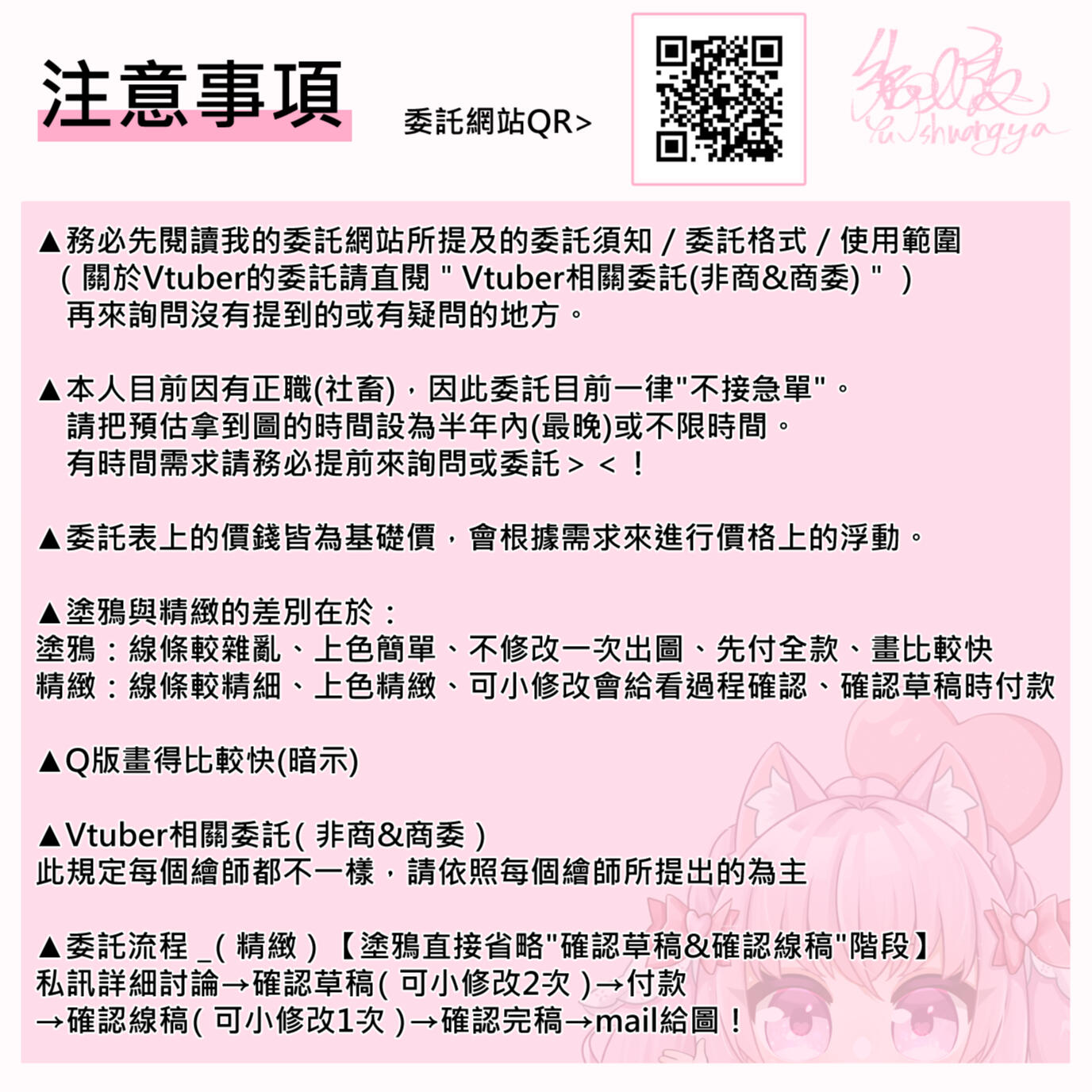 ✦補充|價錢依照人物設定複雜度酌加收✦差分|+ $ 100 ↑ (需討論)